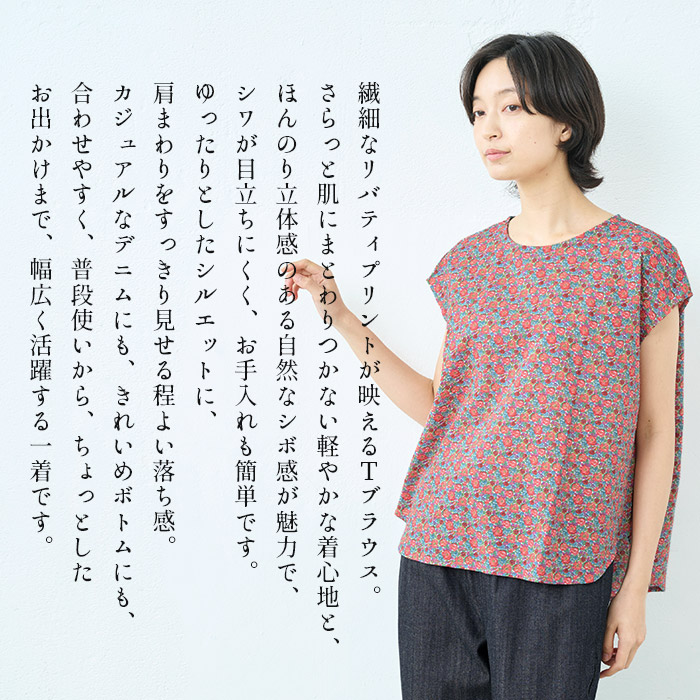 リバティ ブラウス レディース 半袖 夏 リバティプリント ミラクルウェーブ Tブラウス 日本製 涼しい 綿100% 花柄 おしゃれ 大人 上品