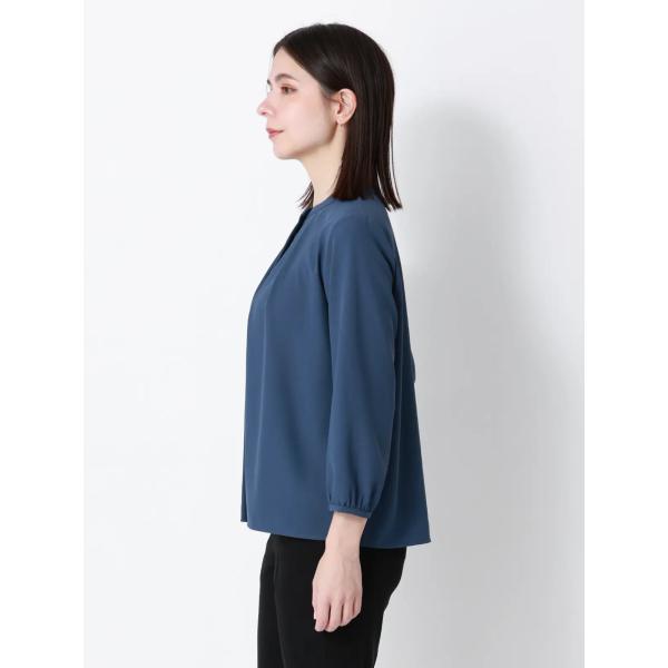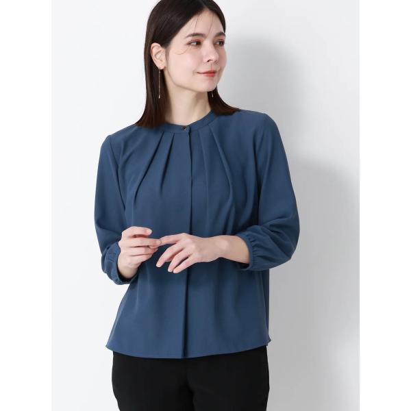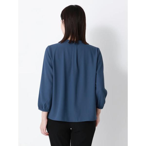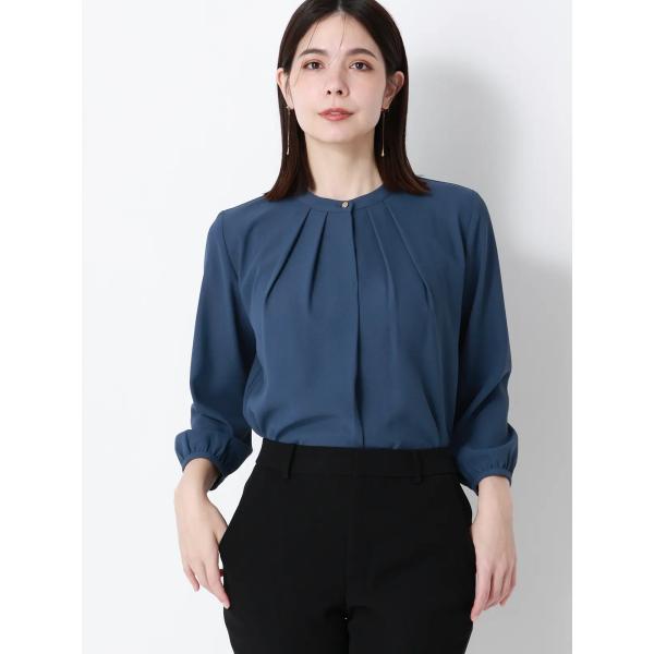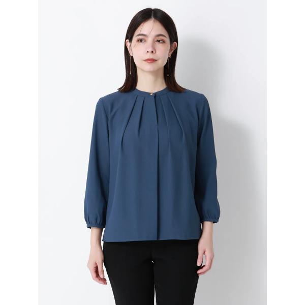 【スーツスクエア】レディース フロントタックブラウス 7分袖 ウォッシャブル ジョーゼット 無地 ブルー系