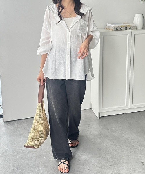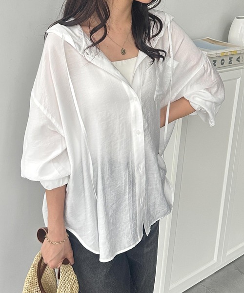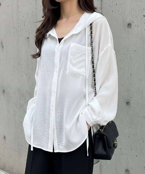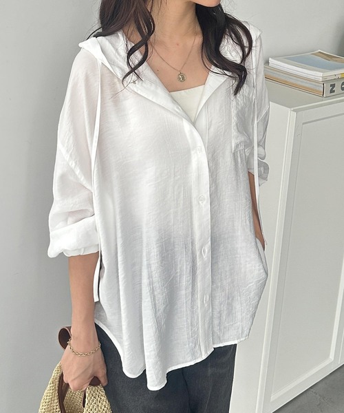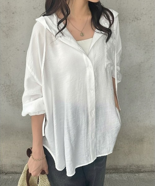 ブラウス シャツ 春夏に活躍!フード付きオーバーサイズパーカーシャツ アソート(無地/チェック) レディース