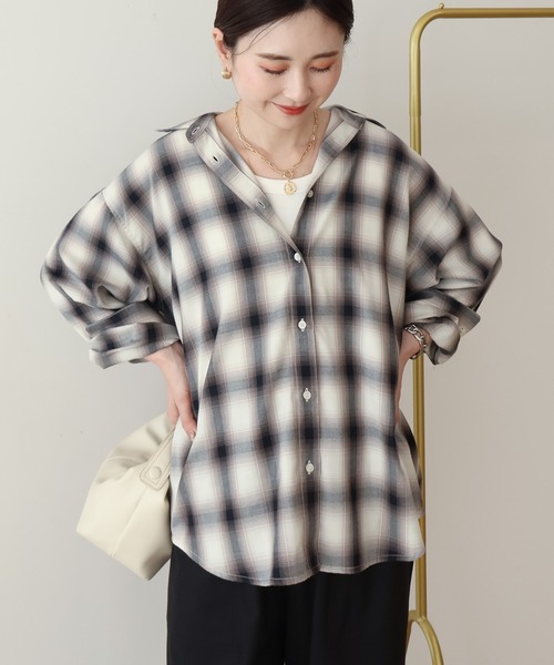 ブラウス シャツ 「イージーケア」 チェックバックタックシャツ レディース