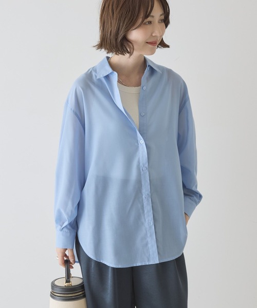 ブラウス シャツ 「イージーケア・UVカット」シアーラウンドシャツ レディース