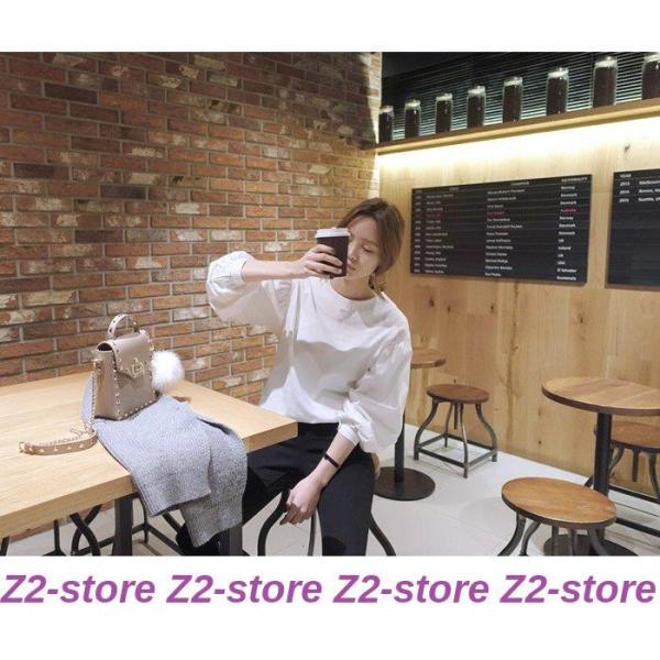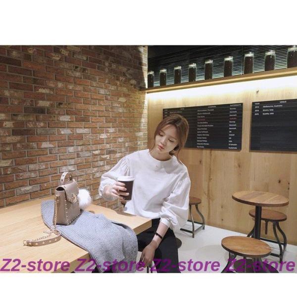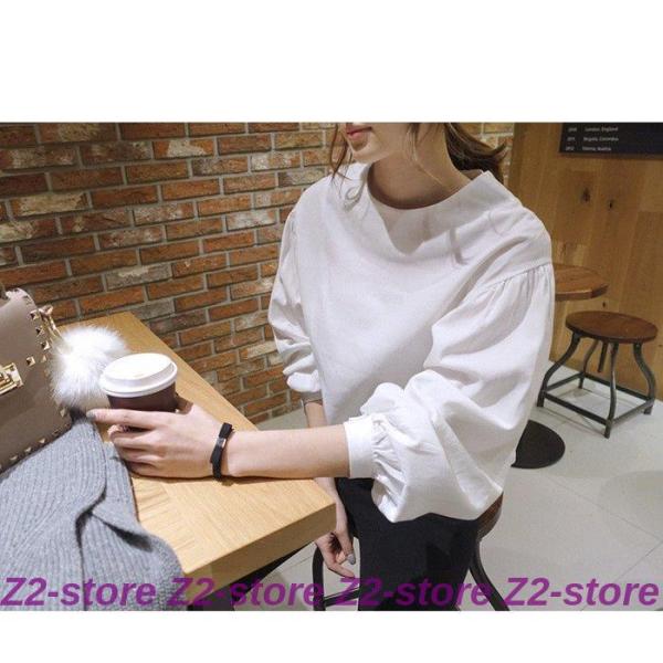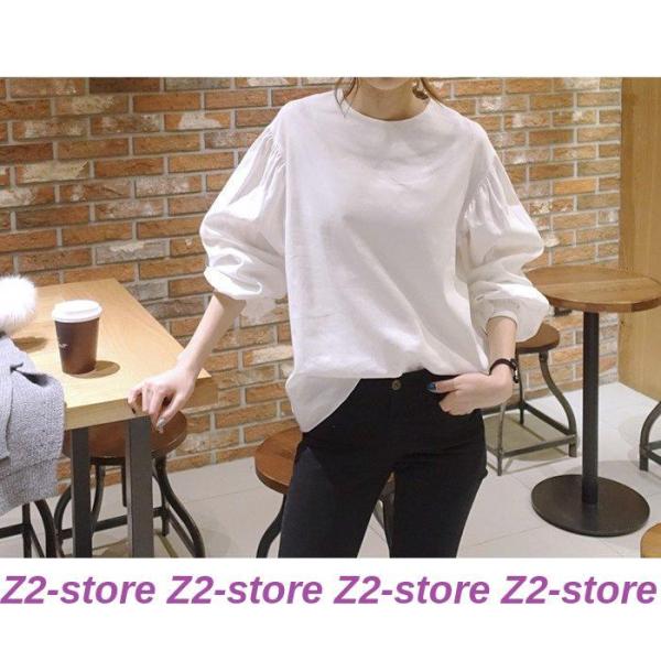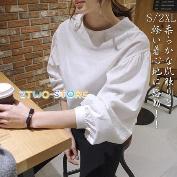 ブラウス レディース 秋物 tシャツ プルオーバー トップス バルーン袖 長袖 無地 パフスリーブ おしゃれ オフィス ホワイト デザイン 春夏 かわいい 通勤.通学