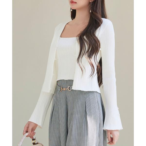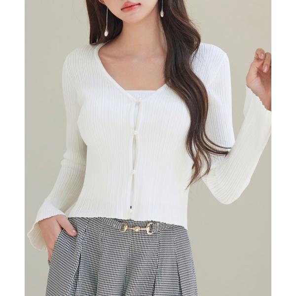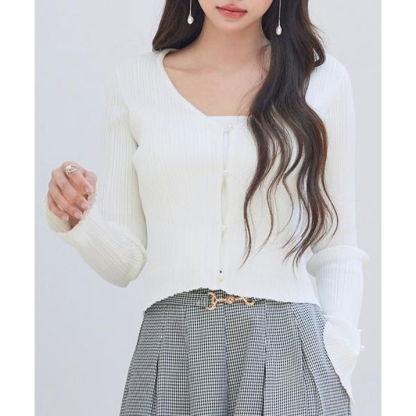 ニット トップス レディース プルオーバー カーディガン風 トップス ショート丈トップス ショート丈 リブニット レイヤード風 長袖 ハイゲージニット