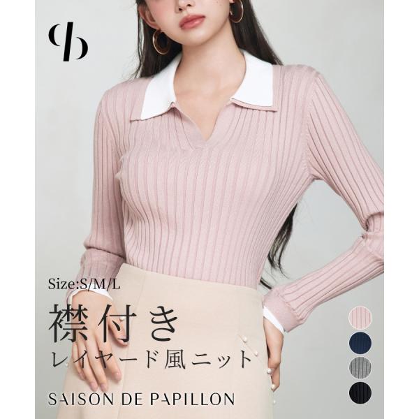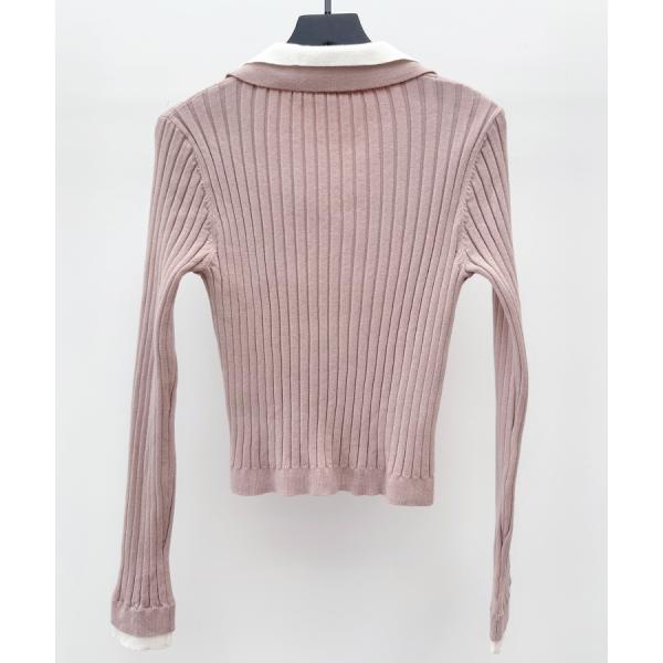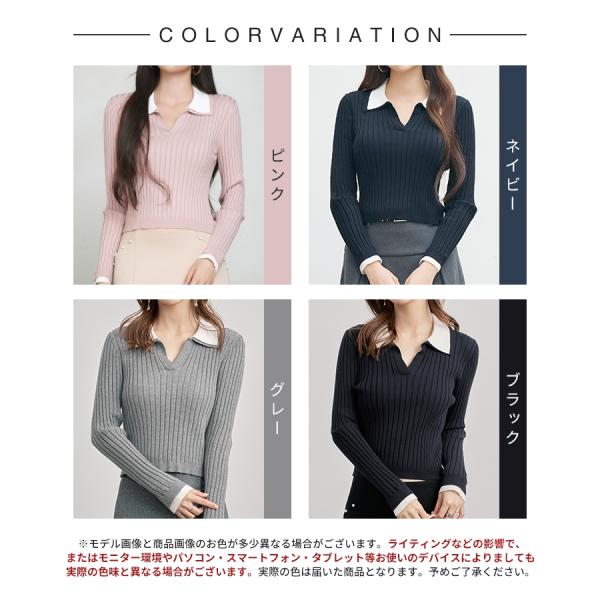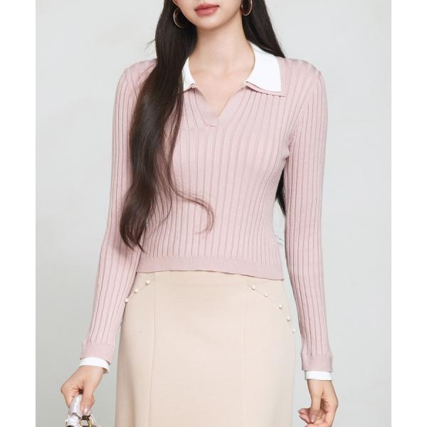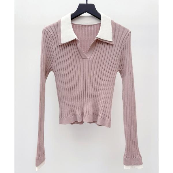 ニット トップス レディース プルオーバー ショート丈トップス ショート丈 リブニット 長袖 ハイゲージニット ニットシャツ 襟付きニット バイカラー