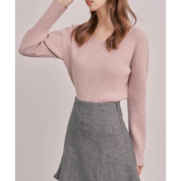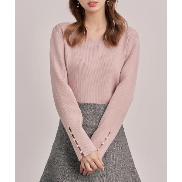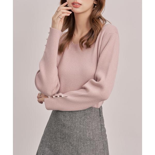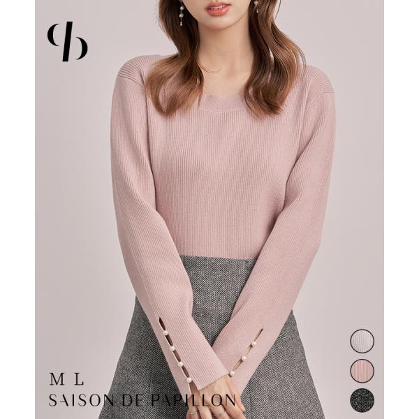 ニット レディース トップス 長袖 クルーネック ラメニット ラメ入り ドロップスリーブ レーヨン混 パール飾り ゆったり ジュエルネック 袖スリット