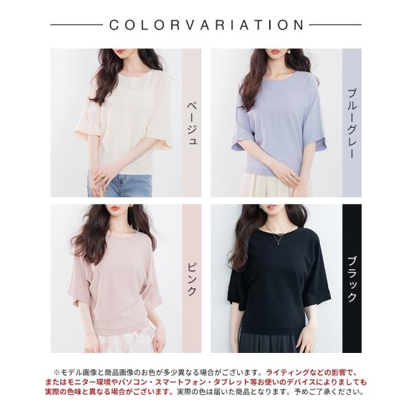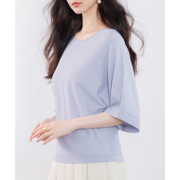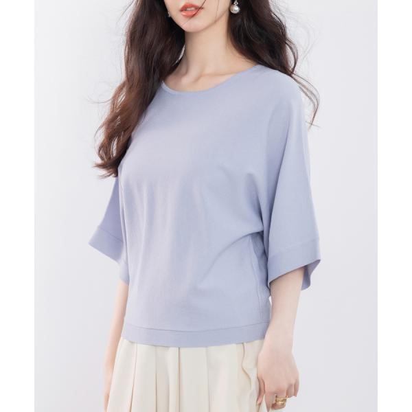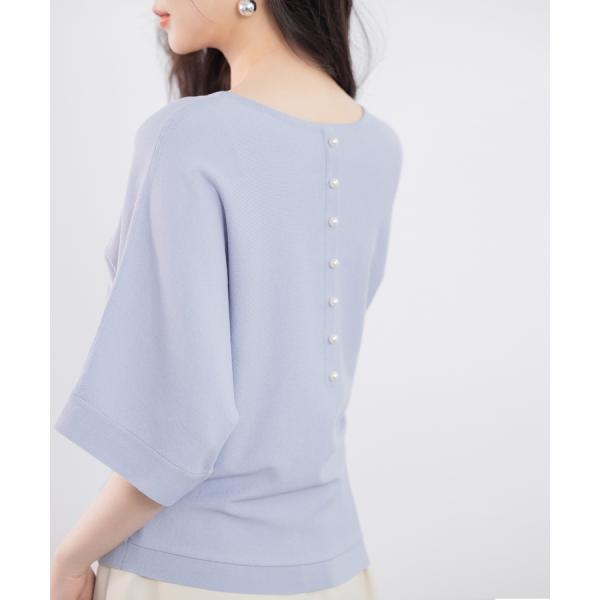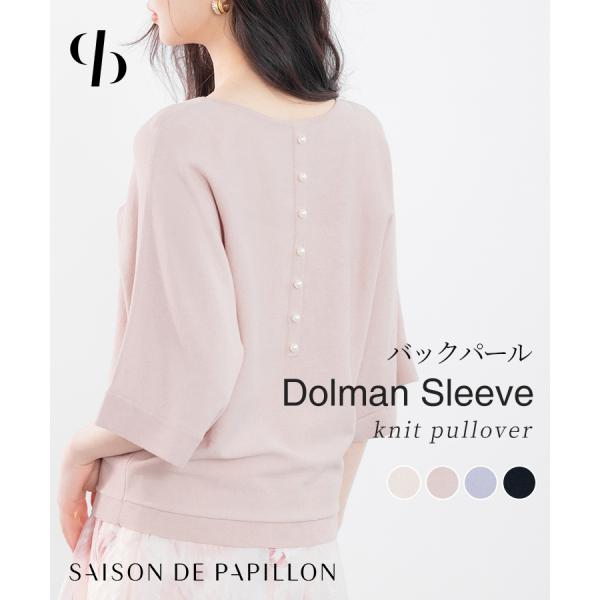 プルオーバー レディース ニット トップス クルーネック 七分袖 ドルマンスリーブ バックパール 薄手 オケージョン 入学式 卒業式 通勤 オフィスカ