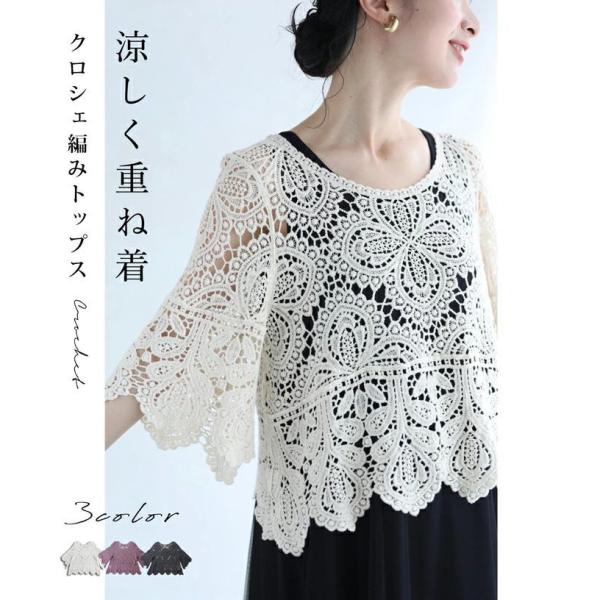 cawaii Sから3L対応 涼しく重ね着クロシェ編みトップス