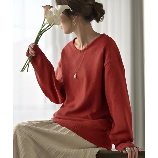 ニット カシミヤタッチ 選べる 3ネック レディース トップス ロング セーター オーバー プルオーバー 長袖 長い ボートネック Vネック