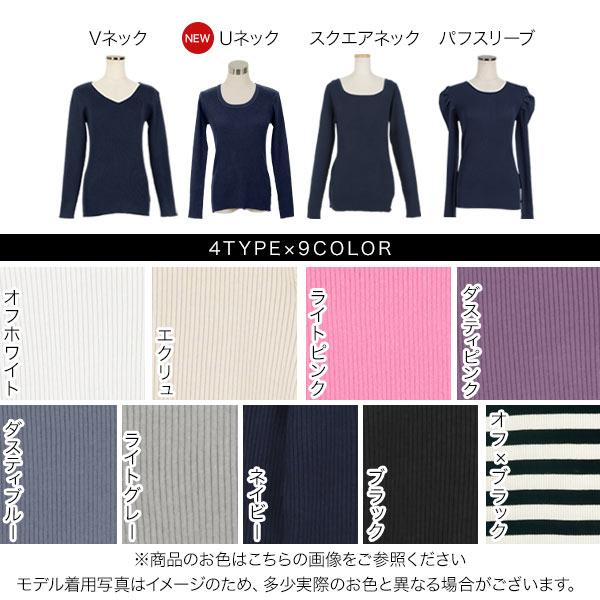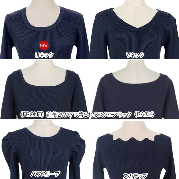 セール リブニット レディース 長袖 クルーネック Vネック 春 冬 40代 50代 30代 C2717送料無料