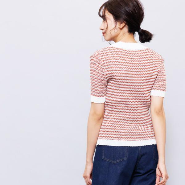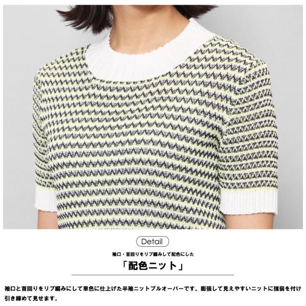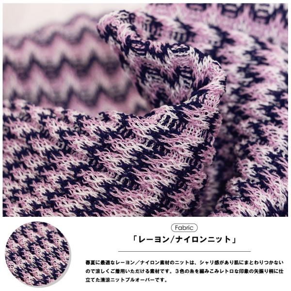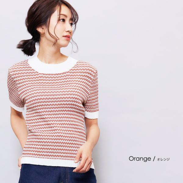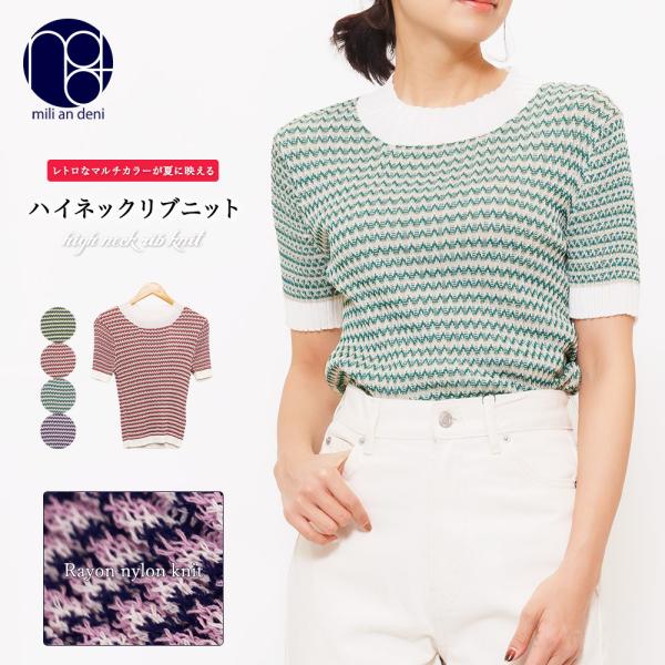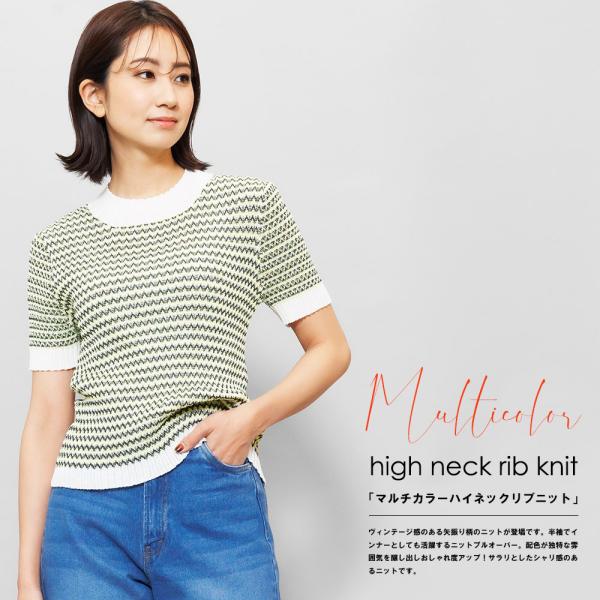 アウトレット ハイネックリブニット レディース トップス マルチカラー 半袖ニット レーヨンニット レトロ柄(郵2)ポイント消化