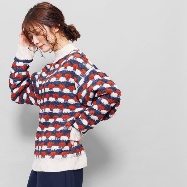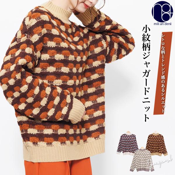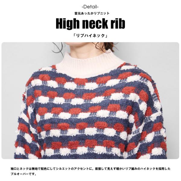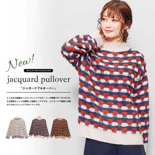ジャガードニット レディース トップス ハイネック プルオーバーニット 長袖 もこもこニット ポイント消化