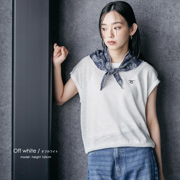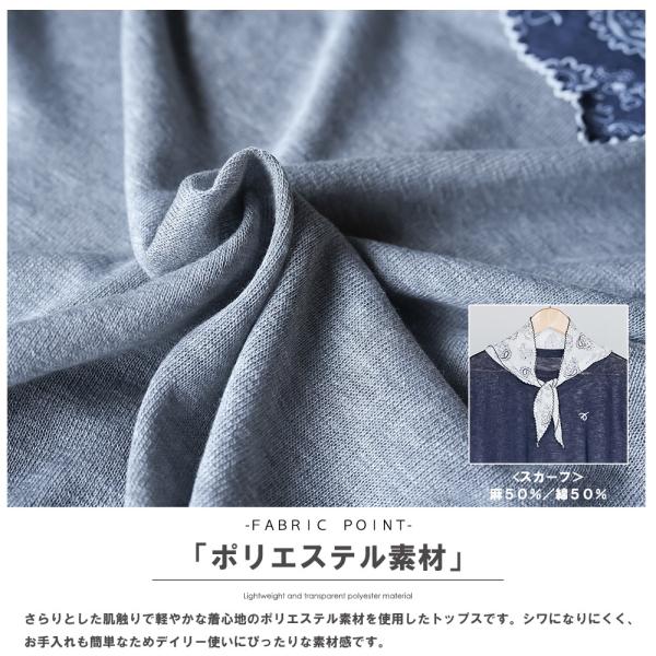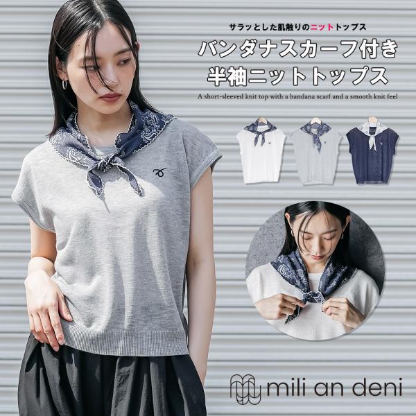 バンダナスカーフ付き半袖ニットトップス 半袖サマーニット シアーニット バンダナ付き スカーフ付き 半袖 レディース トップス(郵2)ポイント消化