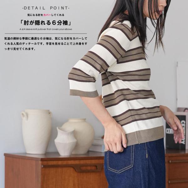6分袖ラガーニットプルオーバー ラガーニット ボーダーニット ポロ襟 6分袖 薄手ニット インナーニット レディース トップス (郵2) ポイント消化 爆買