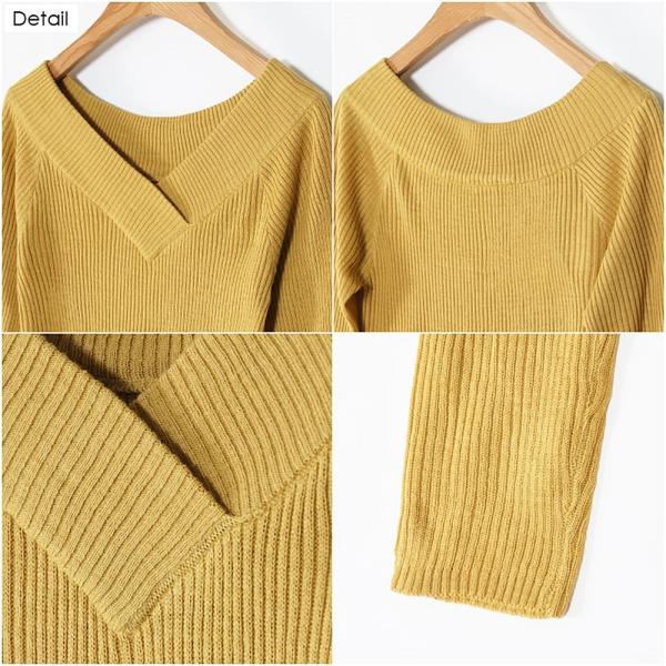 オフショルダー ニット デザインニット ニットソー オフショル Vネック 長袖ニット レディース トップス 送料無料 2WAY