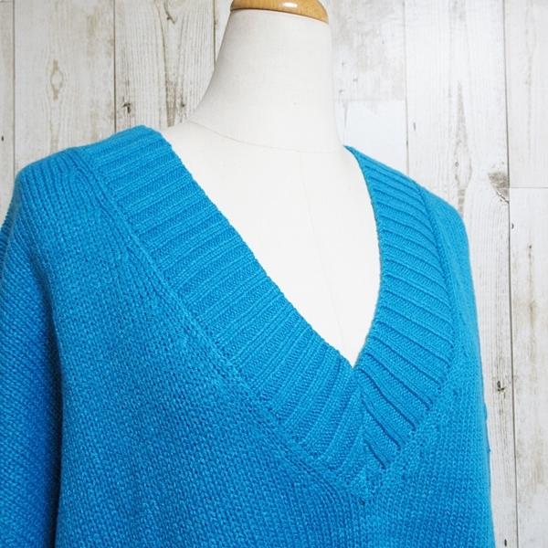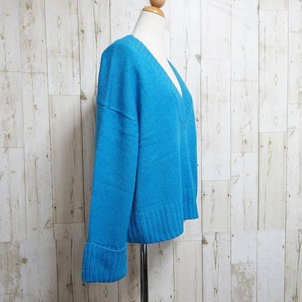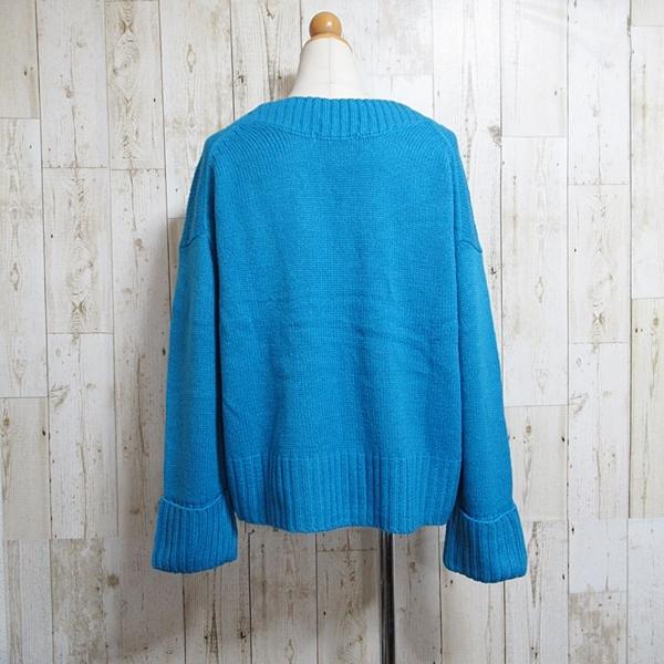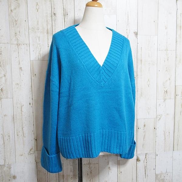 ニット セーター レディース V字ネック 無地ニット 長袖 ブルー グレー オレンジ アイボリー ブラック