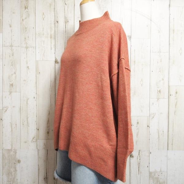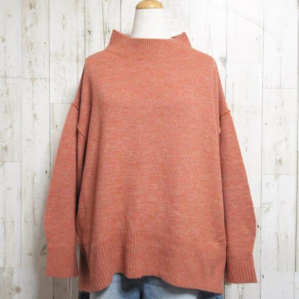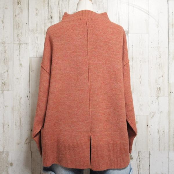 ニット ボトルネック プルオーバー レディース セーター バックスリット 秋冬 ブルー ピンク モカ ベージュ イエロー オレンジ