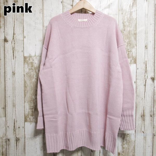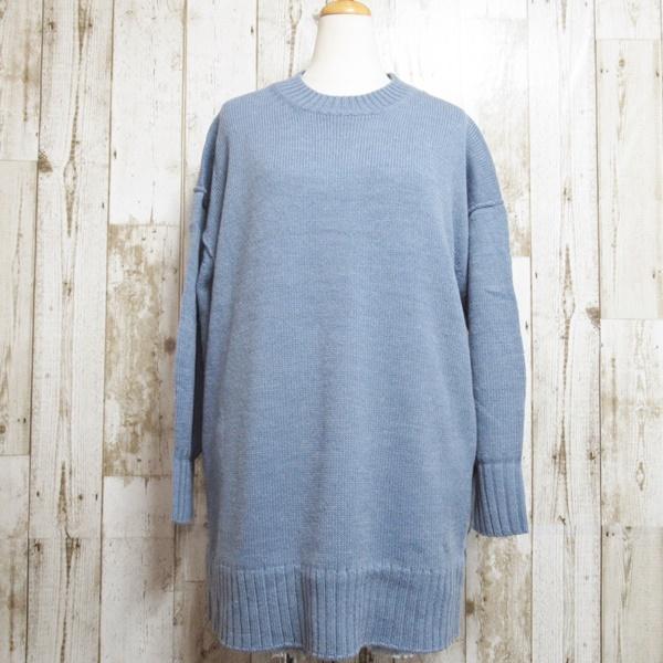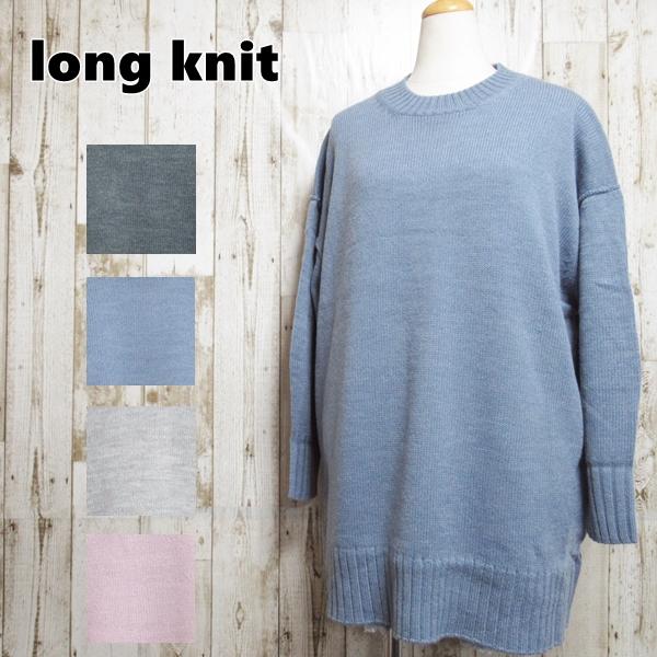 ニット ロングニット ロング丈 ニットワンピース ブルー チャコール グレー ピンク 長袖 セーター 厚手ニット