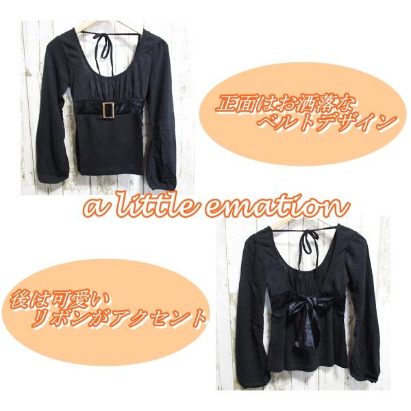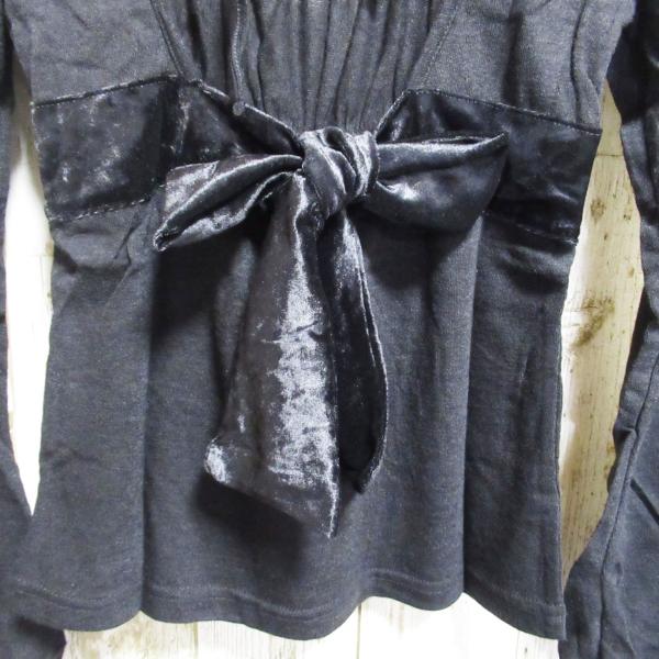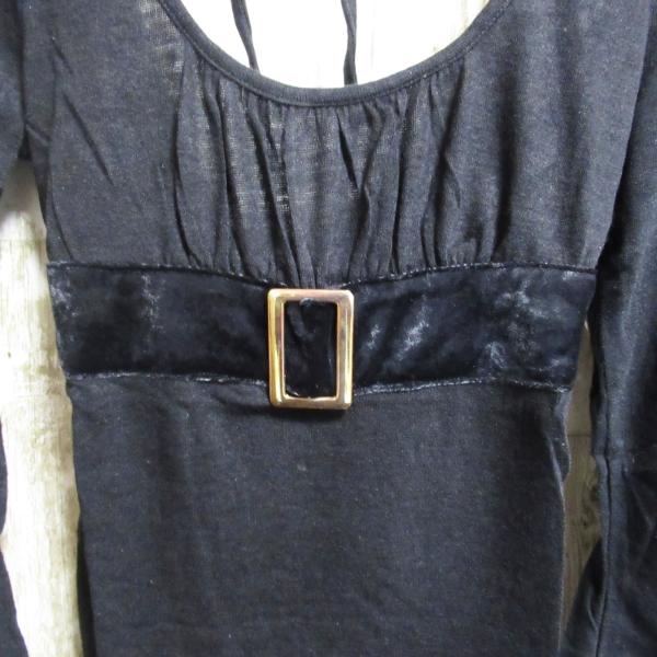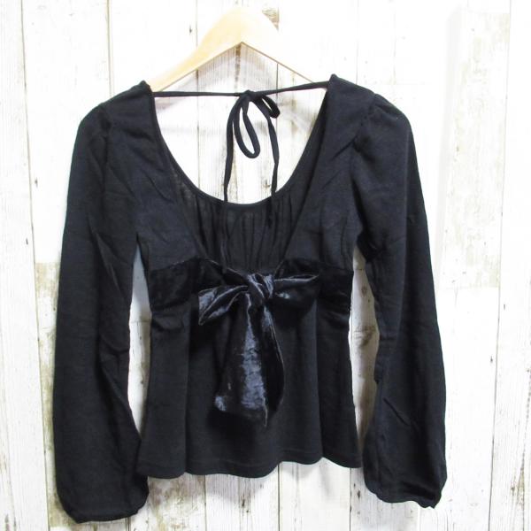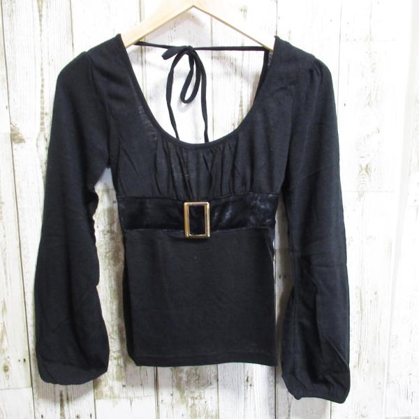 レディース トップス 秋冬 長袖 シンプル 黒 ブラック ベルト リボン お洒落 可愛い