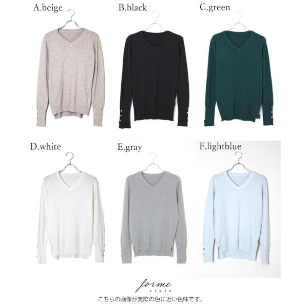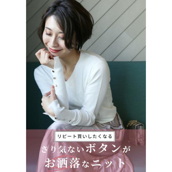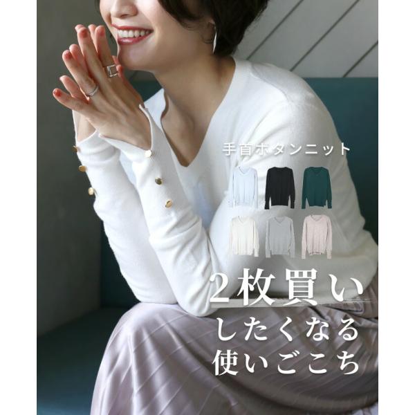 トップス レディース Vネック ニット プルオーバー 通勤 手首ボタン 袖 金ボタン アクセント 重ね着 Vネック 袖ボタン
