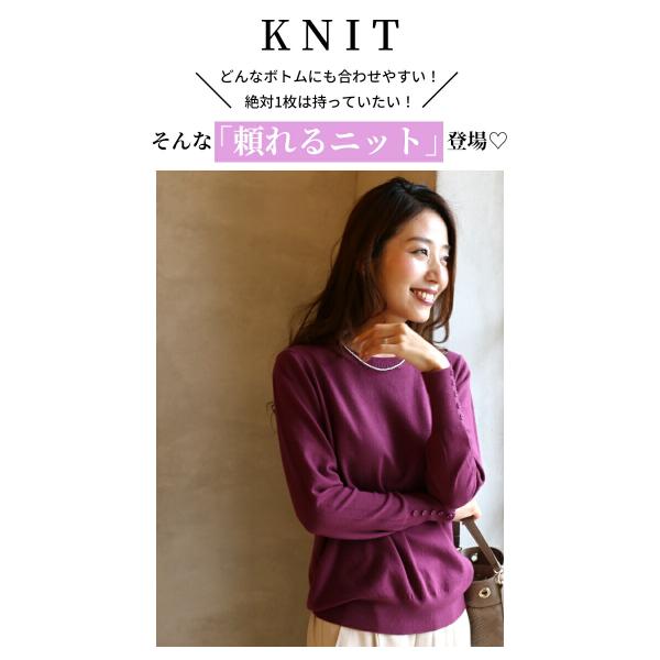 トップス 長袖 ニット ブラック デザインニット ボタン 手首 シンプル 無地 お仕事 仕事 通勤 休日 レディース ちくちくしない フリーサイズ