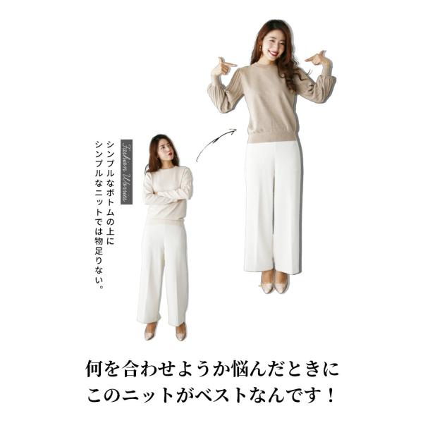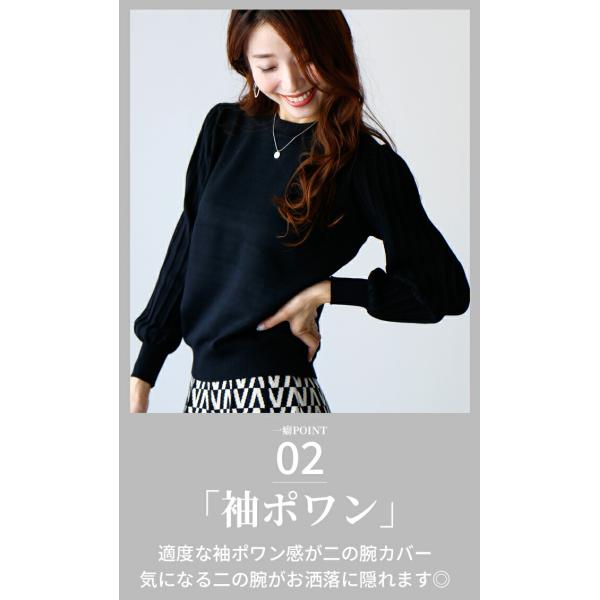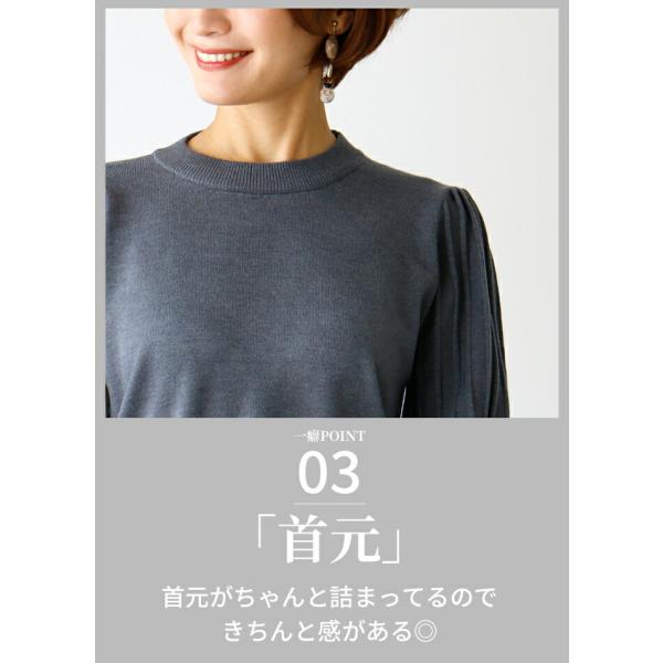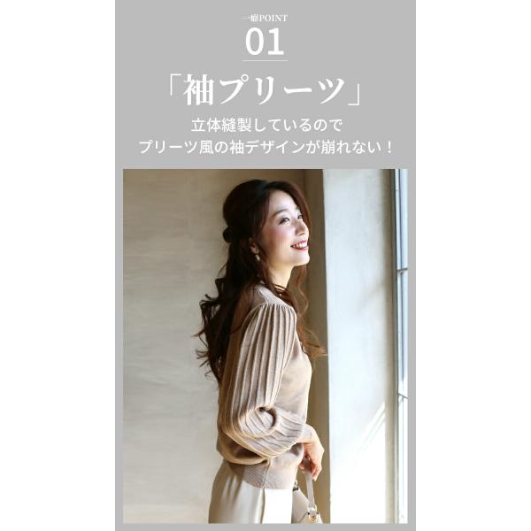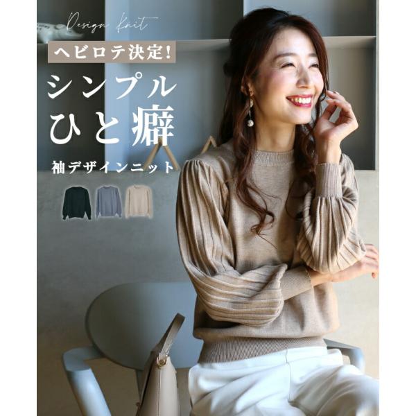 トップス 長袖 ニット ブラック プリーツ 黒 デザインニット 袖コン ブラック グレー ベージュ 灰 袖ポワン お仕事 ハイゲージ 上品