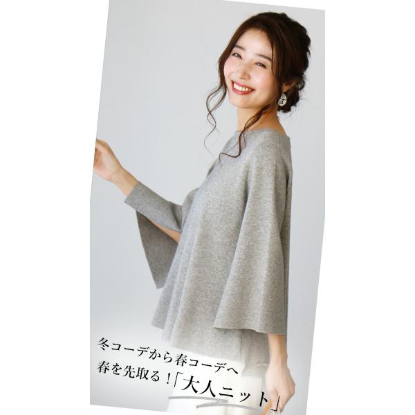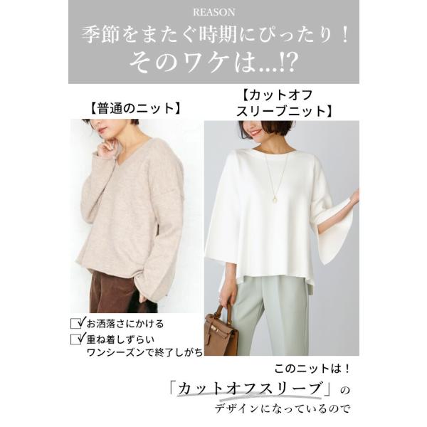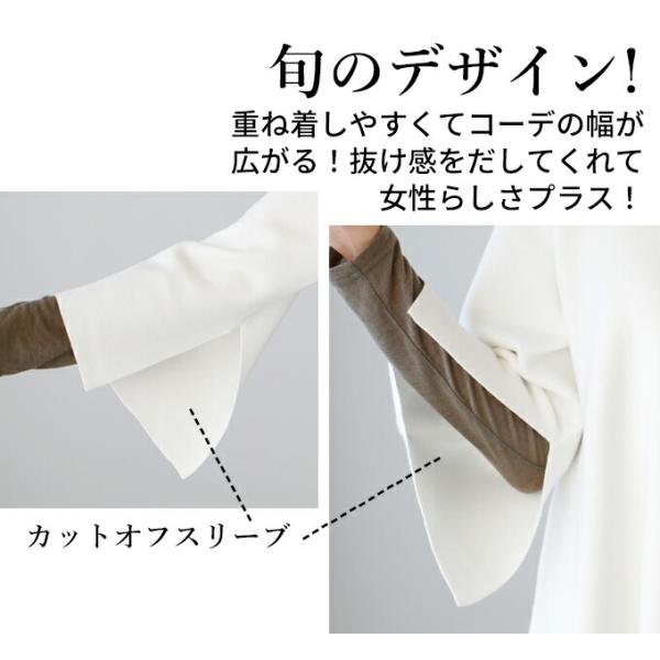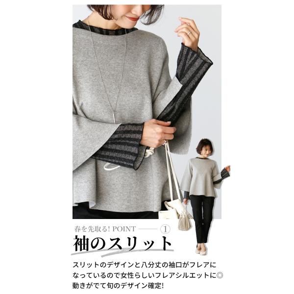 レディース ニット 冬 春 レイヤード 八分丈 八分袖 8分袖 カットオフスリーブ 重ね着 スリット フレア ボートネック アシンメトリー ゆったり
