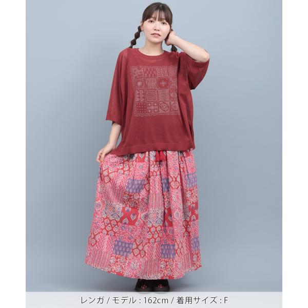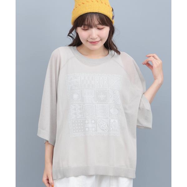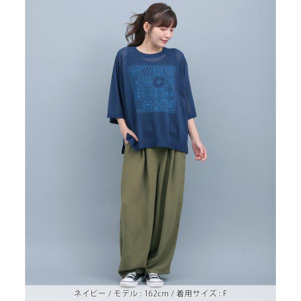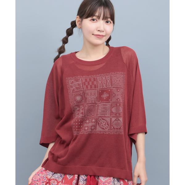 シアーニットインナー付プルオーバー / ニット&インナーセット シアーニット タンクトップ プリント レディース 春 夏 秋 半端袖 クルーネック 透け感