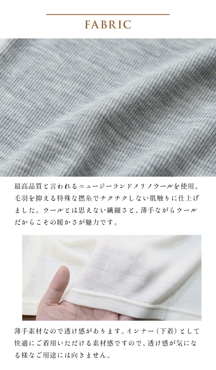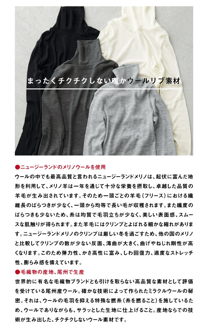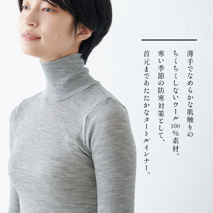 メリノウール タートルネック レディース 薄手 リブ インナー チクチクしない ミラクル ウール100% 日本製