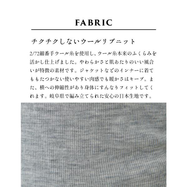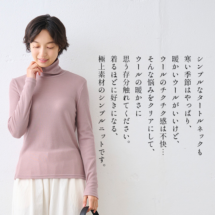 タートルネック レディース 長袖 リブ チクチクしない ウール100% リブニット タートルプルオーバー 日本製