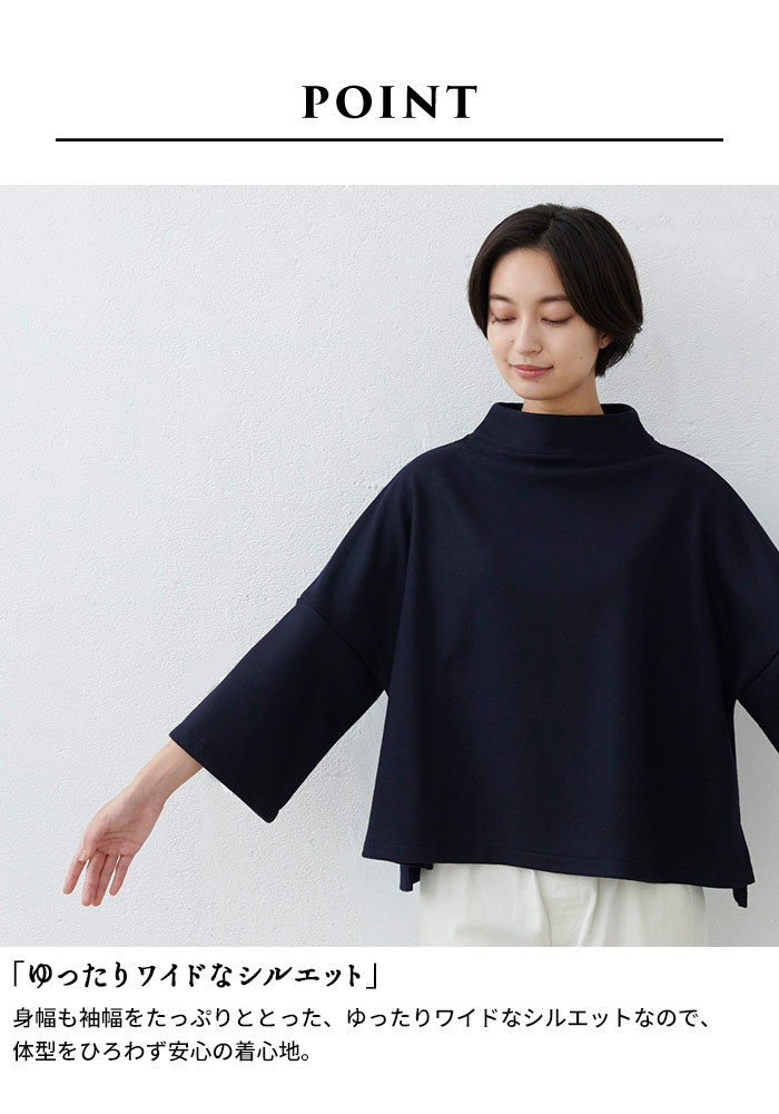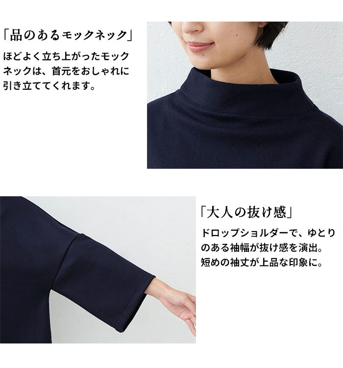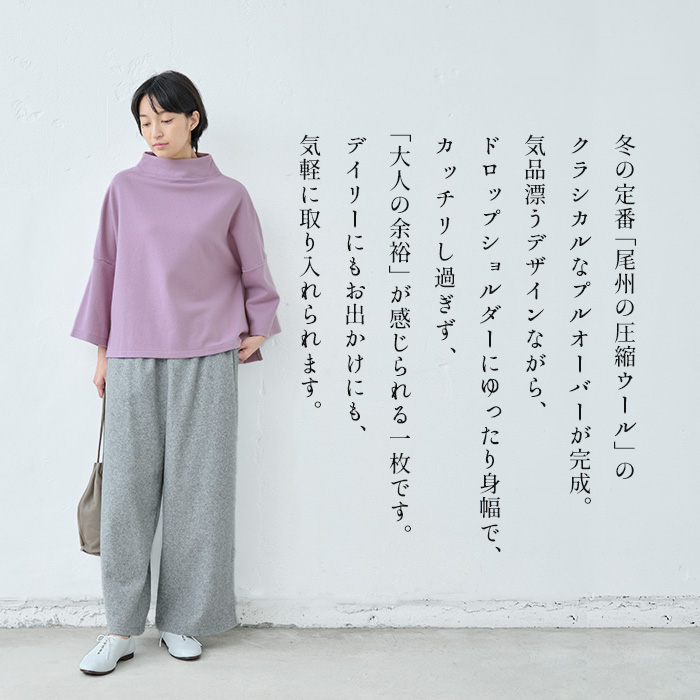 トップス レディース 40代 50代 上品 圧縮ウール100% モックネック プルオーバー 日本製 暖かい 防寒