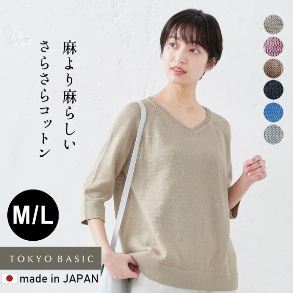 M・Lサイズ サマーニット レディース vネック ギマコットン100% Vネック プルオーバー 日本製 レディース 40代 50代