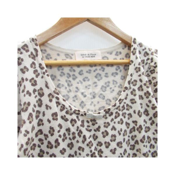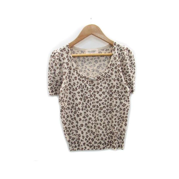 レッセパッセ ニット カットソー 半袖 ラウンドネック ヒョウ柄 レオパード柄 リボン ウール混 アンゴラ混 38 ベージュ /MS30 レディース