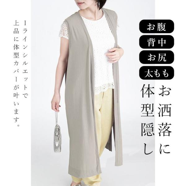 【送料無料/日本製/再入荷】 キレイめロングジレ 2色 洗える 防シワ レディース トップス ジレ ロングジレ ベスト スリットあり 体型カバー 無地 大人 夏