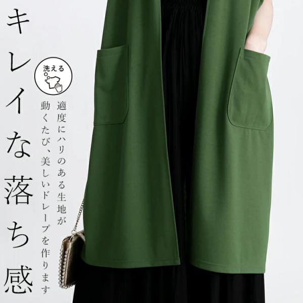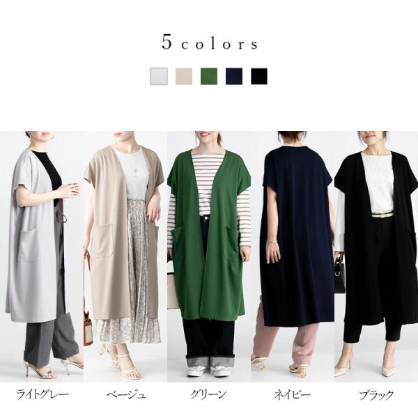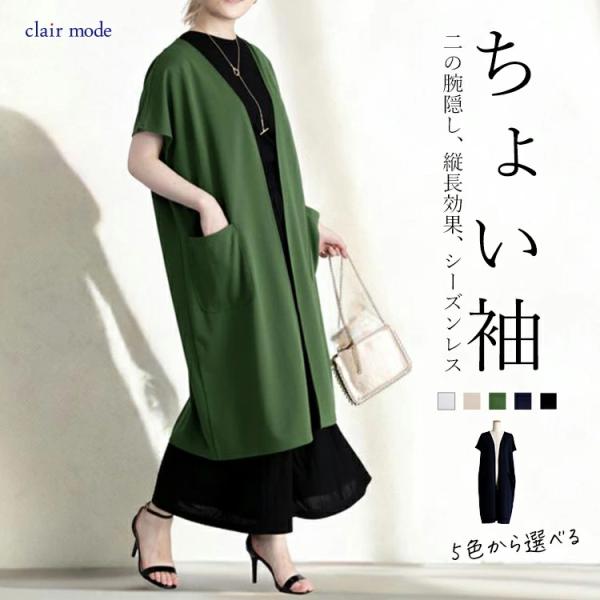 【送料無料】 キレイめロングジレ 5色 M-L 洗える 半袖 ドルマンスリーブ レディース トップス ジレ ロングジレ 体型カバー 二の腕隠し 端境期 春秋