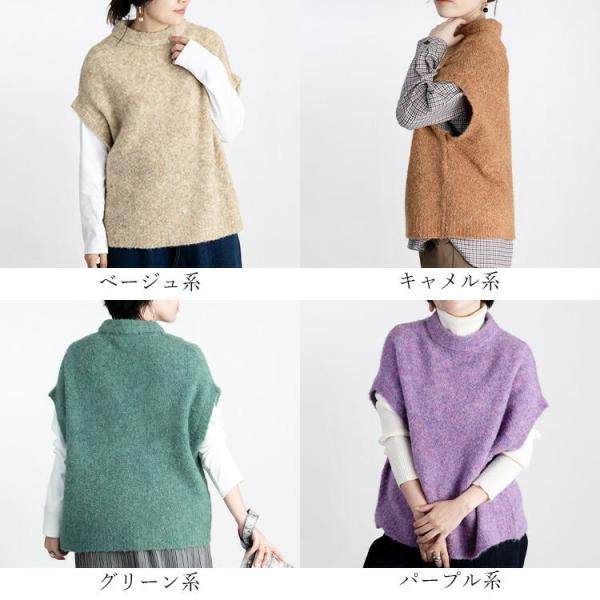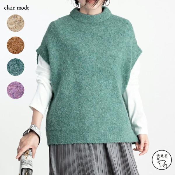 【送料無料/再入荷】 色使いが綺麗なブークレベスト 4色 M-L 洗える レディース トップス ニット プルオーバー 色鮮やか 毛 春秋冬
