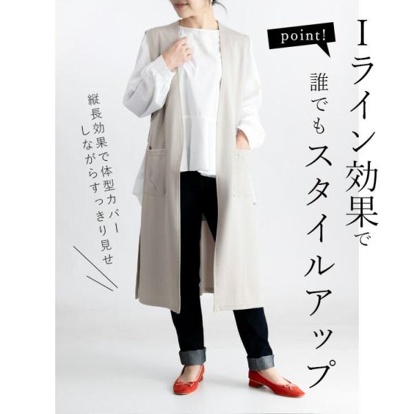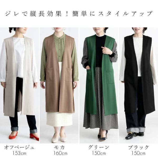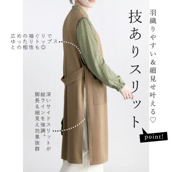 【送料無料】 サイドスリットロングジレ 4色 M L 洗える ノースリーブ レディース カットソー ベスト ロング丈 ストレッチ シワになりにくい 羽織 柔らか 上品