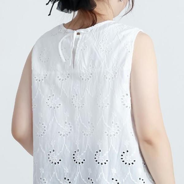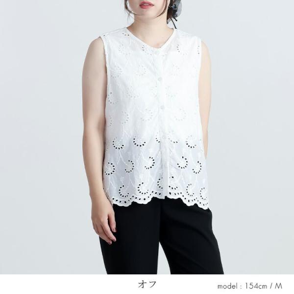 【送料無料】 刺繍使いベスト 3色 M L 洗える 綿100% レディース トップス ベスト ブラウス ノースリーブ コットン100% レイヤード 刺しゅう 春夏