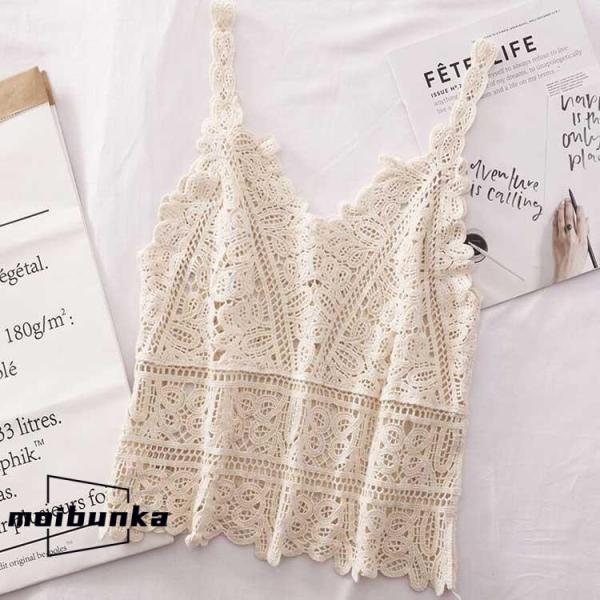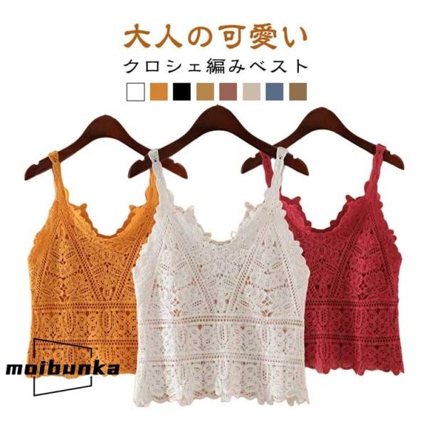 ベスト レディース 春夏 ビスチェ トップス ベスト クロシェ編み 透かし編み クロシェ ニット vネック かぎ編み かぎ針 ベスト レース ノースリ