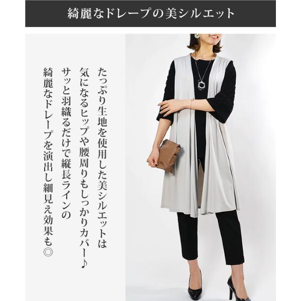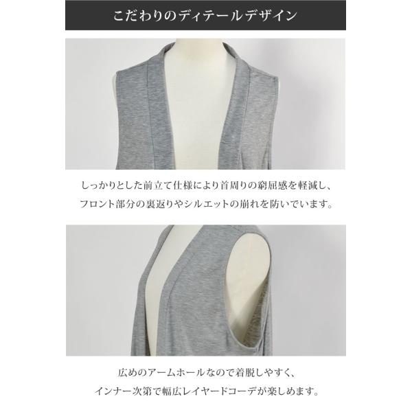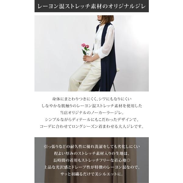 (期間限定クーポン)ノーカラー ジレ レディース ロング ジレ ベスト ストレッチ ミディアム 無地 アウター 体型カバー 羽織 ノースリーブ 春 夏 秋 オリジナル