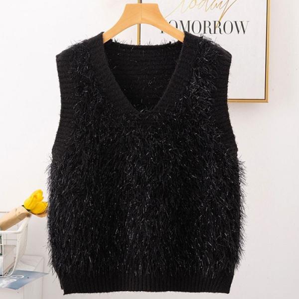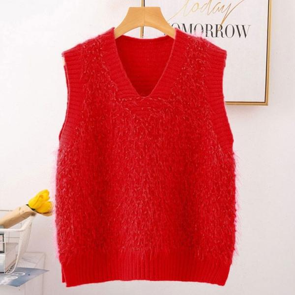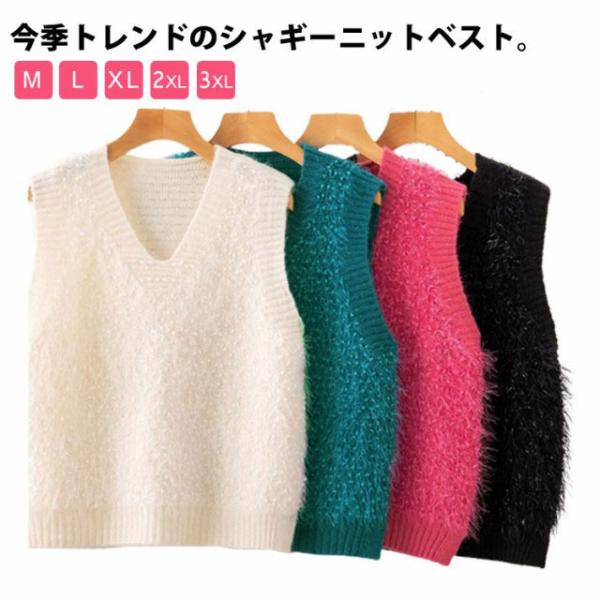 シャギーニットベスト トップス レディース ニットベスト Vネック ノースリーブ シャギーニット ニットトップス レイヤード セーター プルオーバー