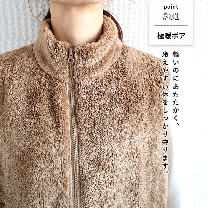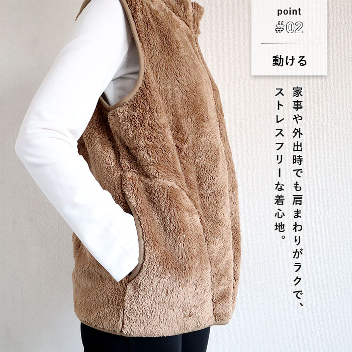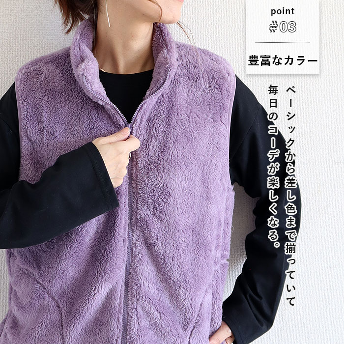 ベスト トップス レディース ボア フリース アウター 秋 冬 白 おしゃれ ジレ ジップアップ ノースリーブ 無地 あったか ポケット [郵3]^jk219^