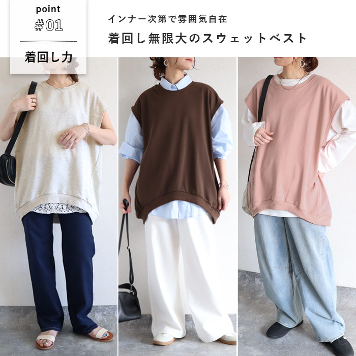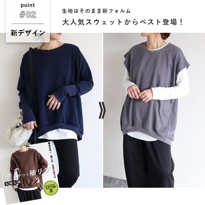 2093円 クーポンで★ ベスト トップス レディース トレーナー スウェット ジレ 春 夏 秋 黒 おしゃれ かわいい プルオーバー レイヤード 重ね着 [郵3]^t015^