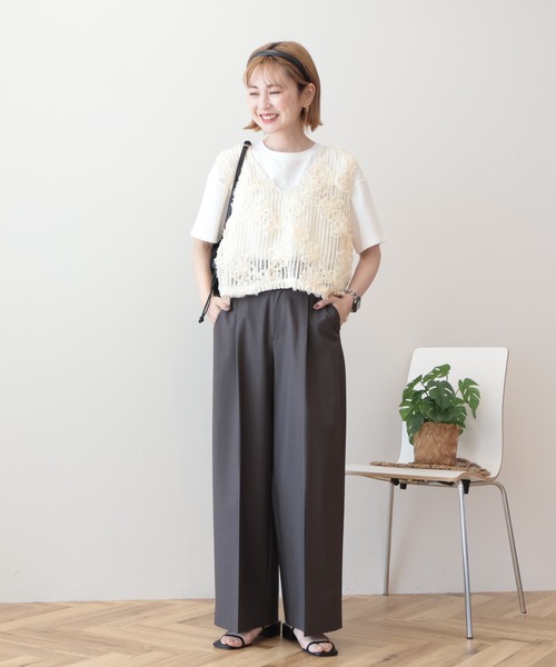 ベスト ジレ 「選べる丈」Vネックレースベスト レディース
