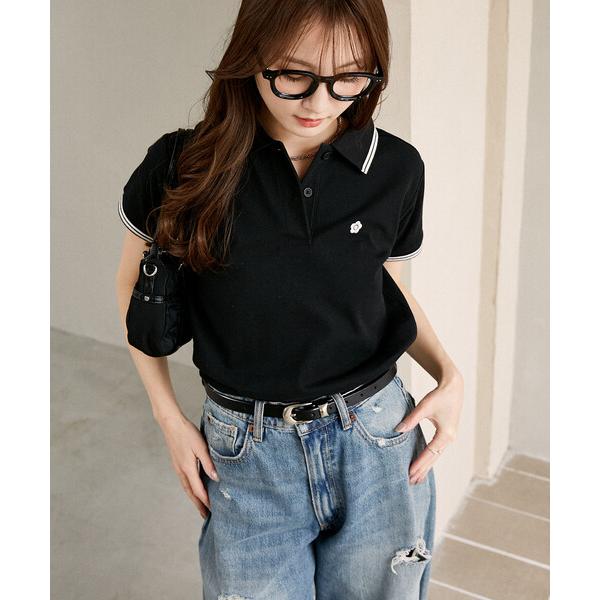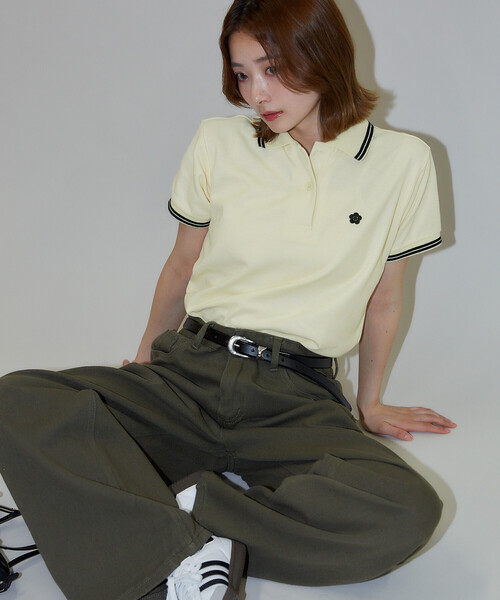 ポロシャツ ポロ MARY QUANT × PUBLUX/マリークワント 鹿の子 ワンポイント ライン ポロシャツ 限定展開 レディース