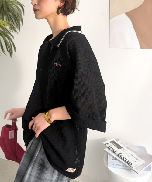 ポロシャツ ポロ 「JaVaジャバ コラボ」大人のスポーティー。超軽量襟ラインオーバーサイズニットポロ レディース メンズ