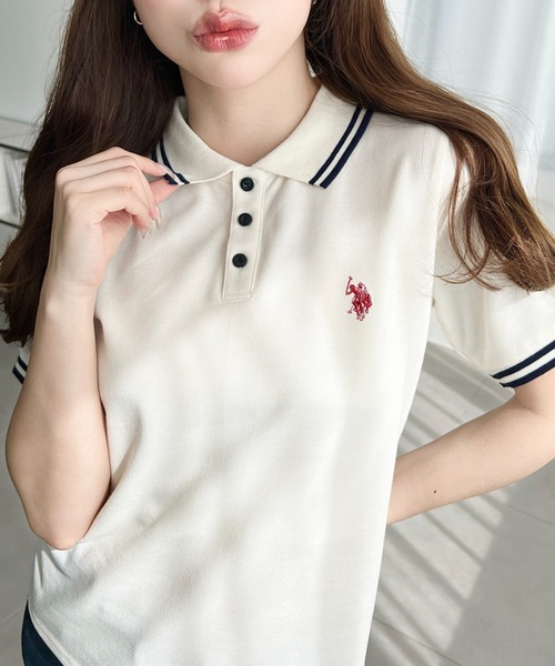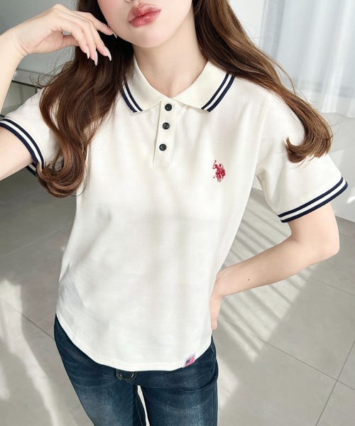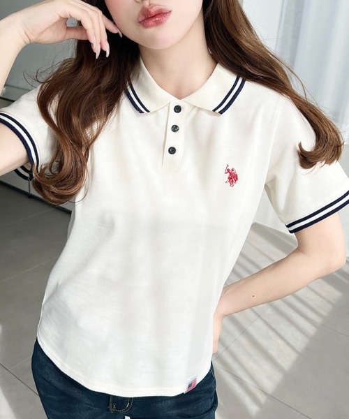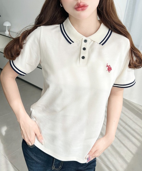 ポロシャツ ポロ U.S.POLO ASSN.ワンポイント刺繍配色ラインリブ半袖ポロシャツ レディース