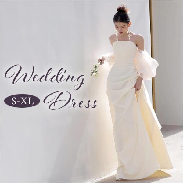 ウェディングドレス オフショルダー 通販 ウエディングドレス ブライダルドレス トレーン ドレス レディース パーティドレス 白 ホワイト ウェディングドレス