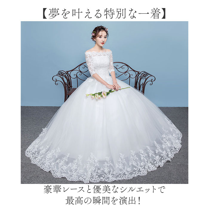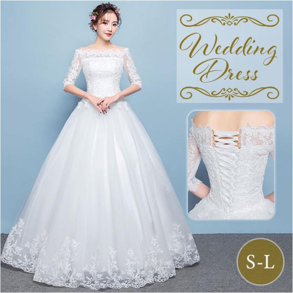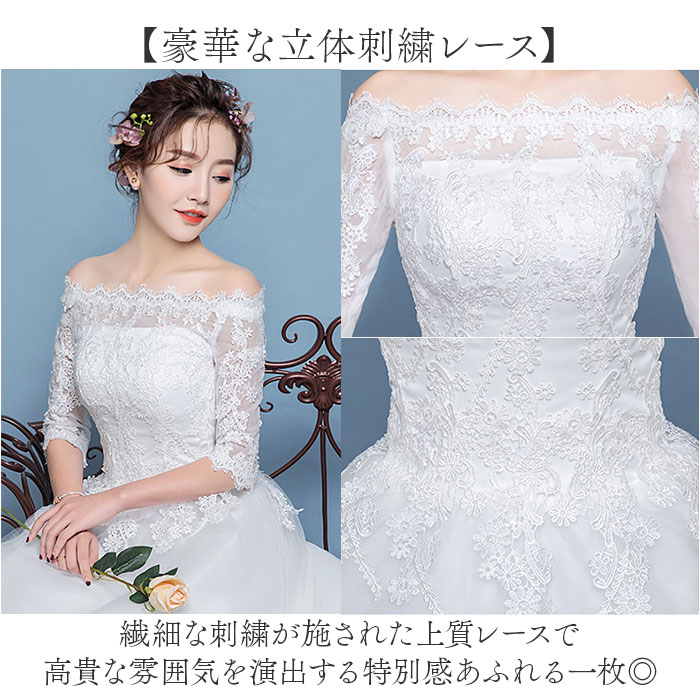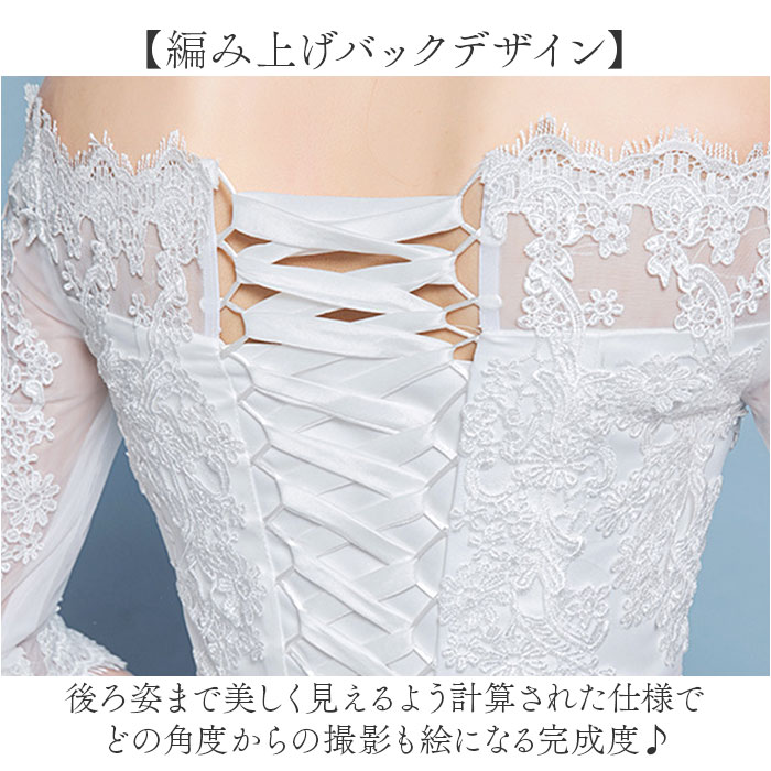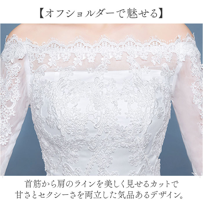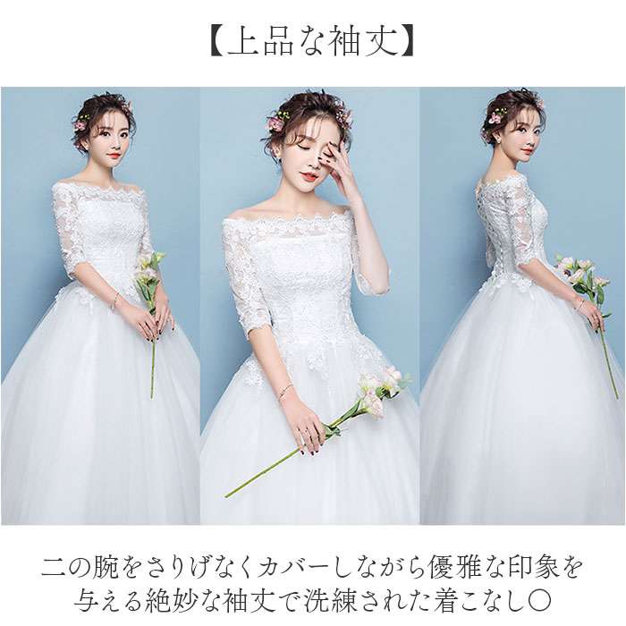 ウェディングドレス 白 袖あり 通販 ホワイト Aライン ウェディング ウエディング ブライダルドレス 2次会 二次会 前撮り 花嫁ドレス ウェディングドレス