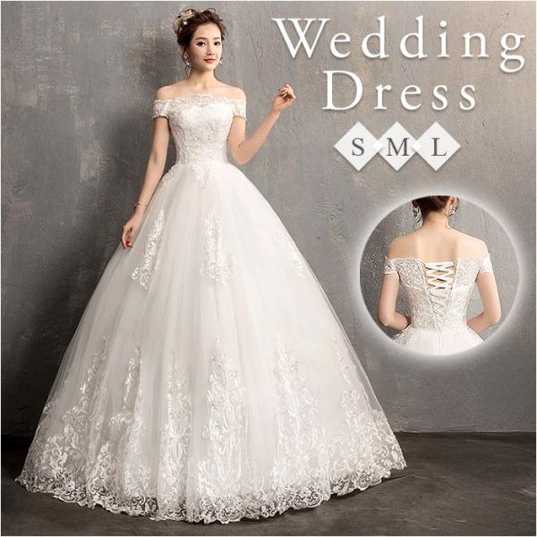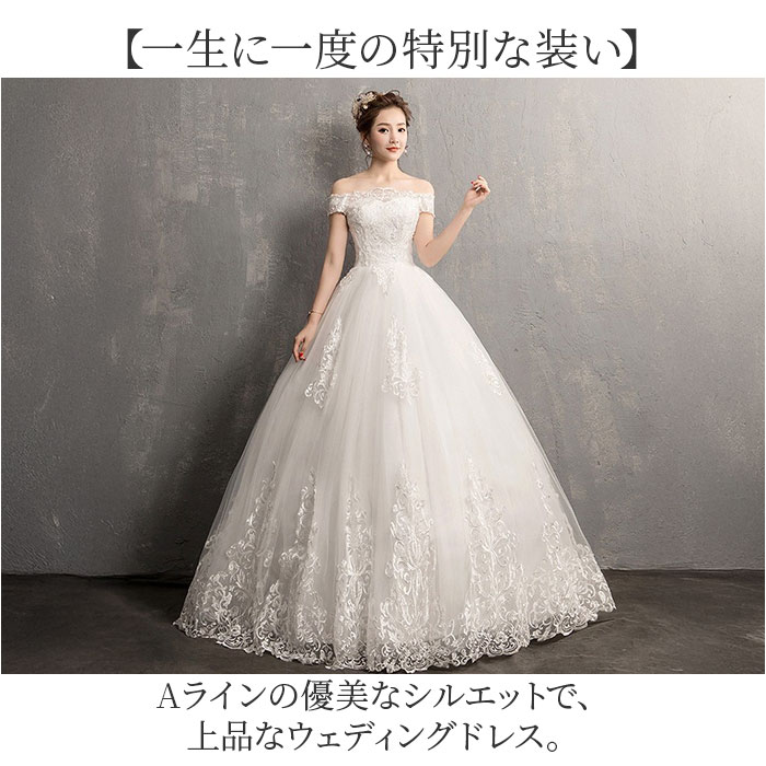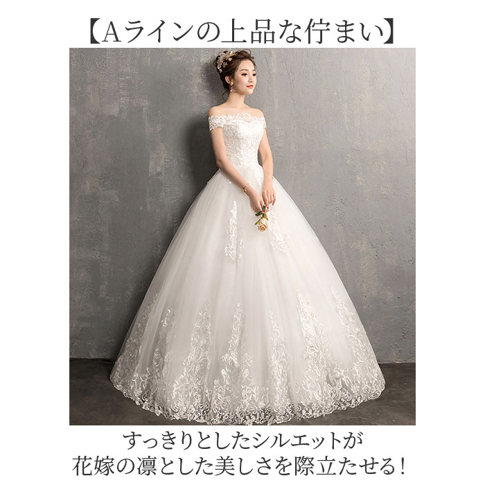 ウェディングドレス 白 通販 ホワイト Aライン ウェディング ウエディング ブライダルドレス 2次会 前撮り オフショルダー オフショル ウェディングドレス