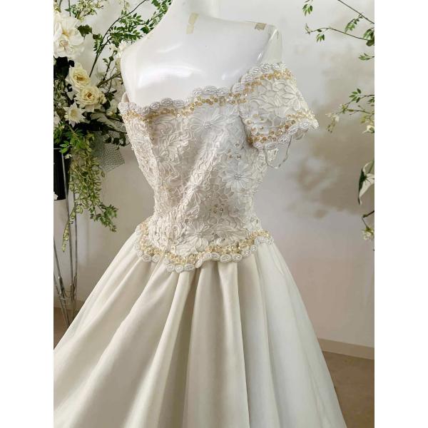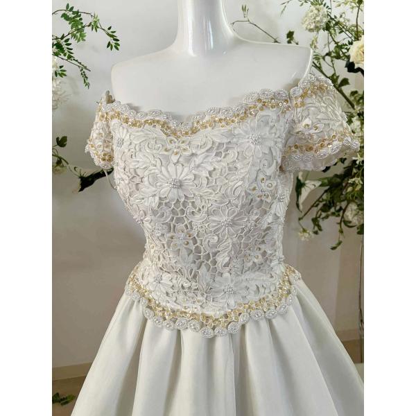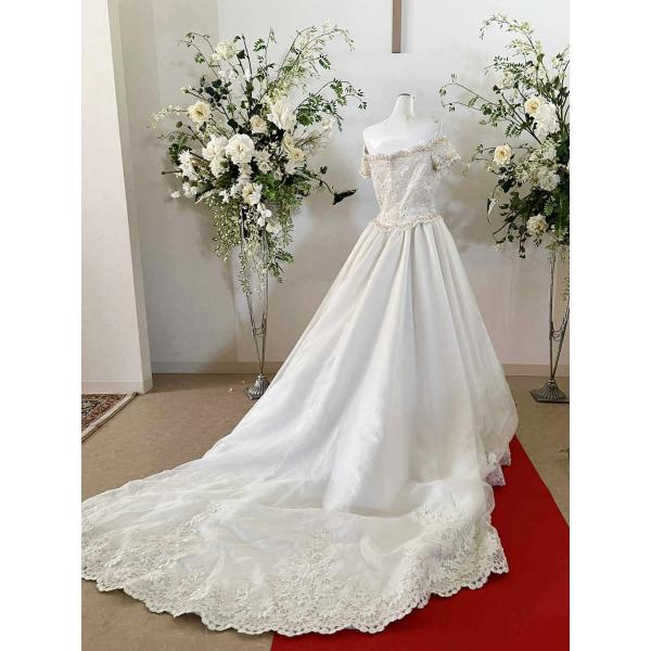 貸衣処分品白ウェデイングドレス 11号 オフショルダータイプ ロングトレーン